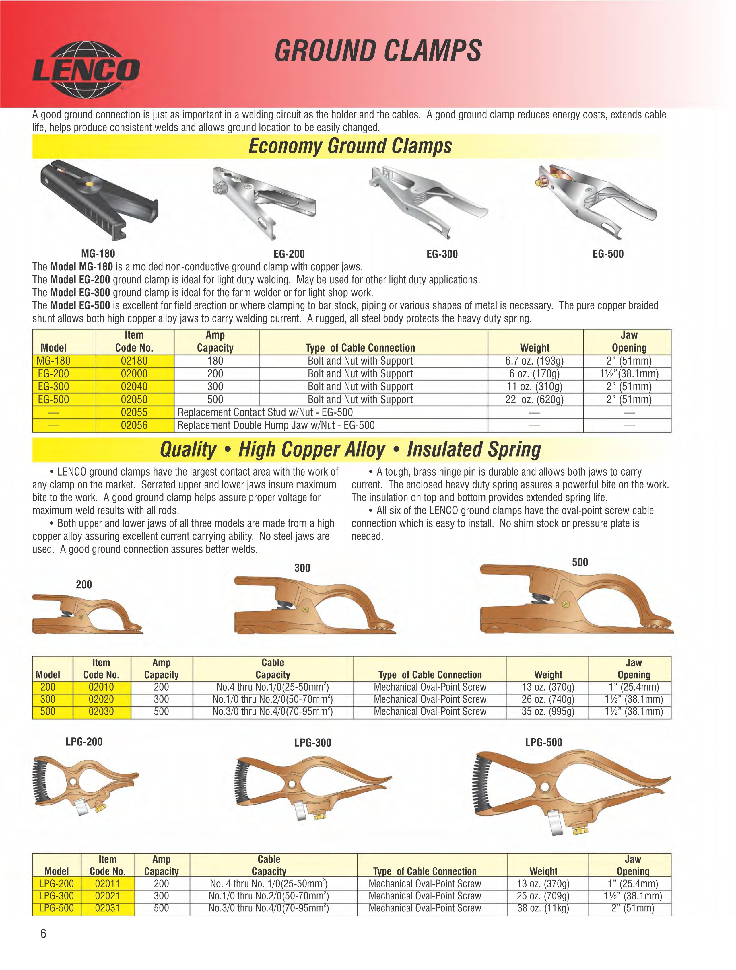 | 500 | 02030 | 500 | No.3/0 thru No.4/0(70-95mm ) | Винт с резьбой | 35 oz. (995g) | 1½” (38.1mm) |