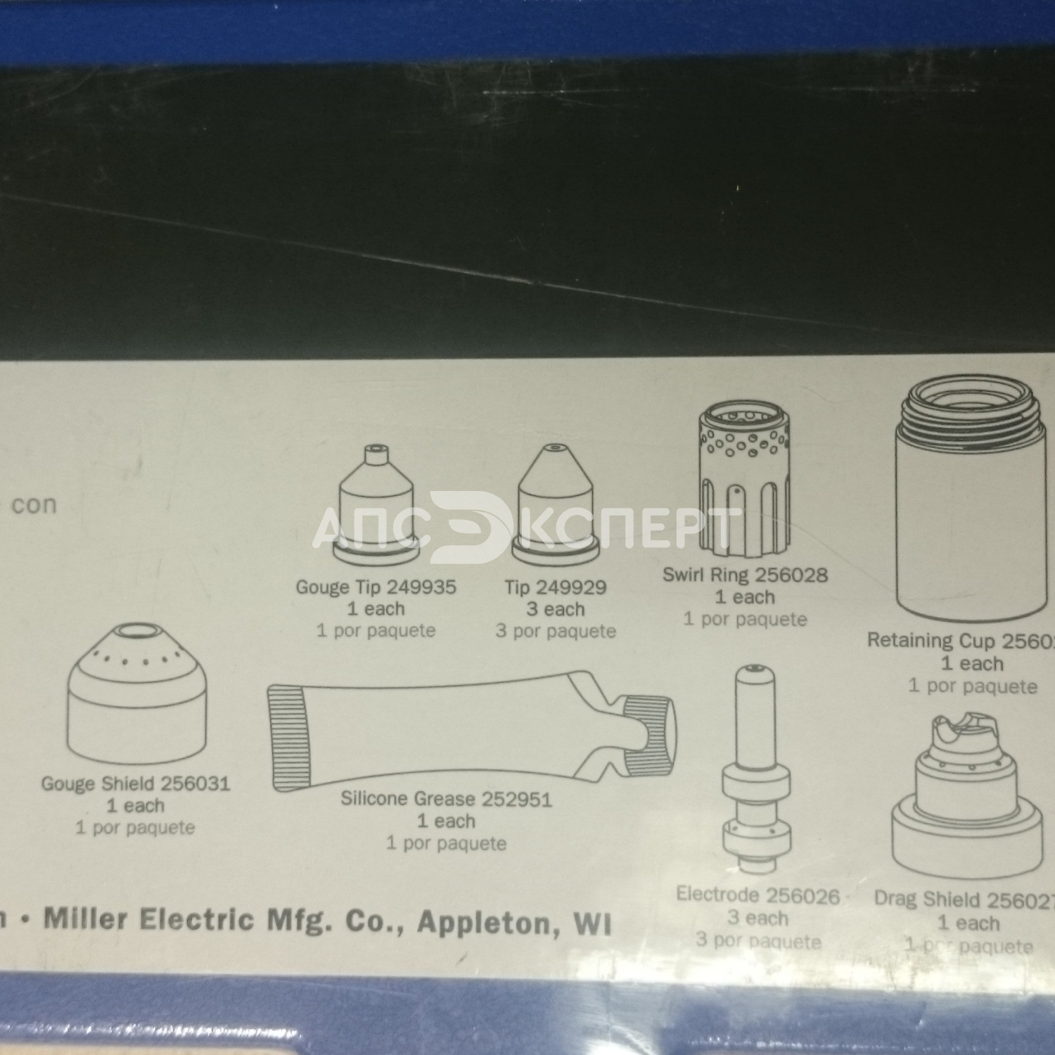 Набор расходных частей XT60 для плазменной резки Miller Electric (артикул 256033) — комплексное решение для обслуживания плазмотронов серии XT60. Набор включает компоненты для резки, строжки и технического обслуживания: 3 электрода, 3 сопла 60А, защитный экран для контактной резки, дефлектор, уплотнительное кольцо, завихритель, фиксирующую чашку, сопло для строжки 60А, экран для строжки и тюбик силиконовой смазки.